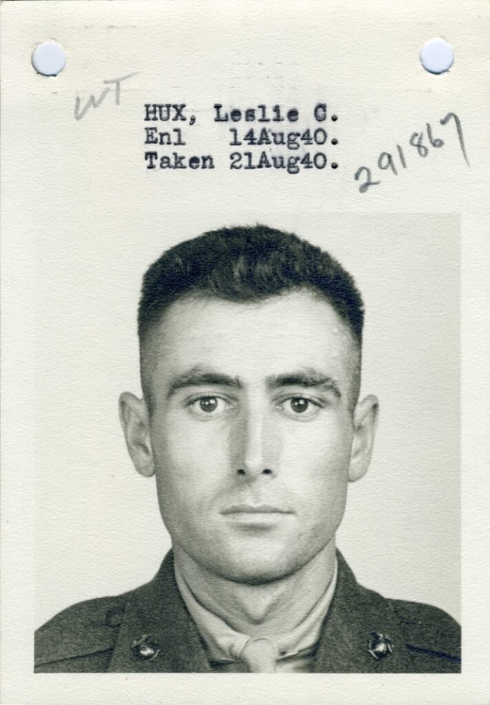 The son attended Walker High School for two years. By the time of the 1940 Census, conducted in the spring, he was living at home with his parents and six siblings and working as a farm laborer. Mr. Hux enlisted in the Marines on Aug. 14, 1940.