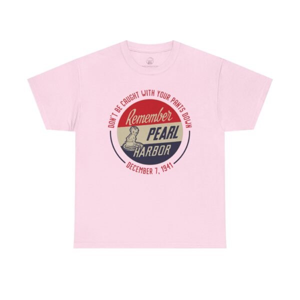 Add a touch of WWII history with the Don’t Be Caught With Your Pants Down – Remember Pearl Harbor! Vintage Button Design Unisex Classic Tee. Inspired by retro wartime memorabilia, this bold button-style graphic captures the rallying cry of December 7, 1941, reminding us to stay vigilant and never forget the USS Arizona and the lives lost at Pearl Harbor.