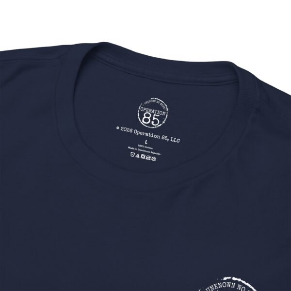 More than just a shirt, this design represents a cause. Every purchase supports Operation 85 and helps advance the effort to bring recognition, dignity, and identity to those who deserve to be remembered by name.