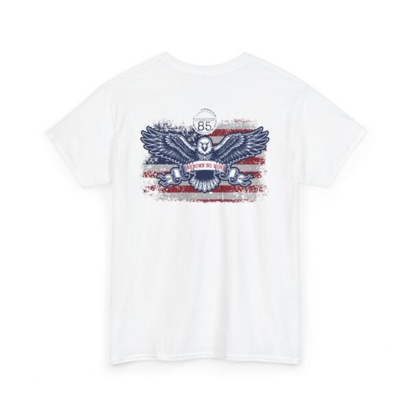 Show your support for the mission with the Operation 85 Unknown No More Eagle Flag Tee. This bold patriotic design features a distressed American flag, a powerful spread-wing eagle, the Operation 85 emblem, and the message “Unknown No More.” on the back. It is a strong visual statement of remembrance, purpose, and commitment to honoring those who have yet to be identified. Operation 85 “Unknown No More” logo appears on front right side.