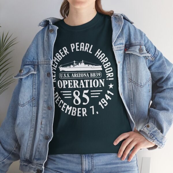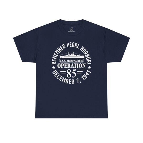 Honor history and show your patriotism with the Remember Pearl Harbor! U.S.S. Arizona Operation 85 Unisex Classic Tee. Featuring a bold front design with the legendary battleship USS Arizona BB-39, this shirt pays tribute to the 1,177 sailors lost on December 7, 1941, while supporting the ongoing Operation 85 project to identify the fallen.