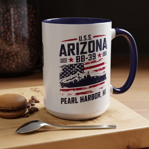 Crafted from durable ceramic with a glossy finish and a navy-blue interior and handle, this 15oz mug is perfect for coffee, tea, or displaying proudly on a desk or shelf. Whether you’re a Navy veteran, history enthusiast, descendant, or supporter of Operation 85, this mug serves as a daily reminder of sacrifice, courage, and our mission to identify the USS Arizona Unknowns.