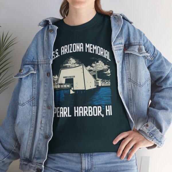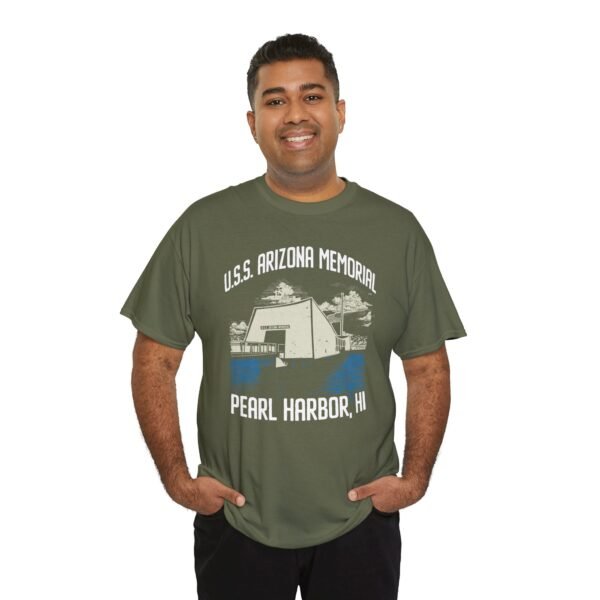 Stand tall in American pride with this USS Arizona Memorial T-Shirt. It’s more than just a shirt — it’s a tribute to the 1,177 brave souls lost on December 7, 1941, and a salute to those who continue to serve our country. Your visit to the USS Arizona Memorial is not complete without this great shirt showing your pride and support of the USS Arizona.