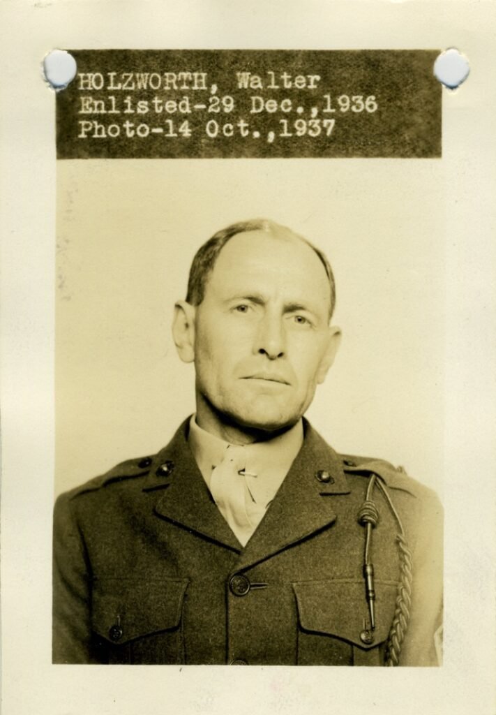 He enlisted in the Marines in 1917 and served in the Aviation Department during World War I and was discharged in December 1919. He re-enlisted in October 1921. He was stationed in the United States, China, Guam, Haiti, and Cuba. In recommending him for a promotion in 1937 his commanding officer said Walter was “exceptionally well qualified” and gave him top marks in the categories of drillmaster, leadership and gunnery captain. He was “military in bearing to an unusual degree,” his commander wrote.